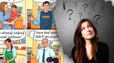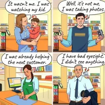 Todo lo que tienes que hacer es mirar la imagen de abajo e identificar cuál de las personas de la tienda robó la cartera de alguien. Tres de las personas de la foto dicen la verdad, pero una de ellas miente.