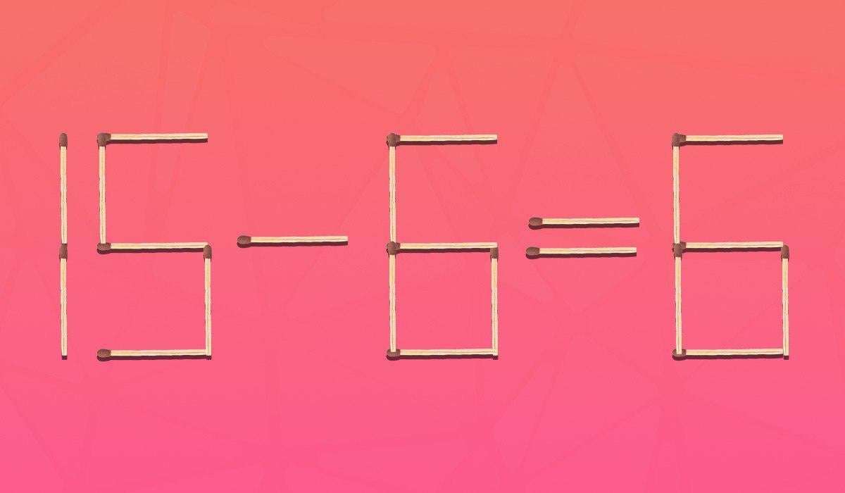 Bueno, vamos a resolverlo juntos. Para obtener una igdad matemáticamente correcta, bastaba con mover la parte inferior izquierda del dígito 6 en medio de la igdad a la parte superior derecha del dígito. Así se obtiene el dígito 9 en lugar del 6. Esto nos da la igdad correcta: 15-9=6.