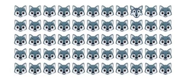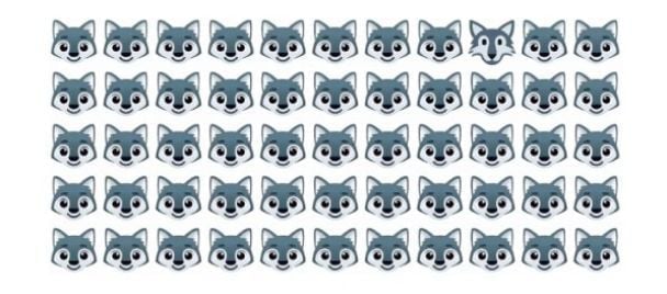 Hay cincuenta y cinco imágenes de un lobo, pero sólo una de ellas es significativamente diferente de las demás. Se tarda 5 segundos en encontrar al extraño en la manada.