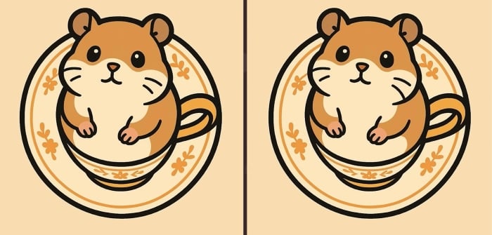 ¿Estás preparado para el siguiente reto? Fíjate bien en las dos imágenes de un hámster sentado en una taza. A primera vista pueden parecer idénticas, pero hay 3 pequeñas diferencias. ¿Crees que puedes encontrarlas todas en 51 segundos? ¡Inténtalo y pon a prueba tu agudeza vis!
