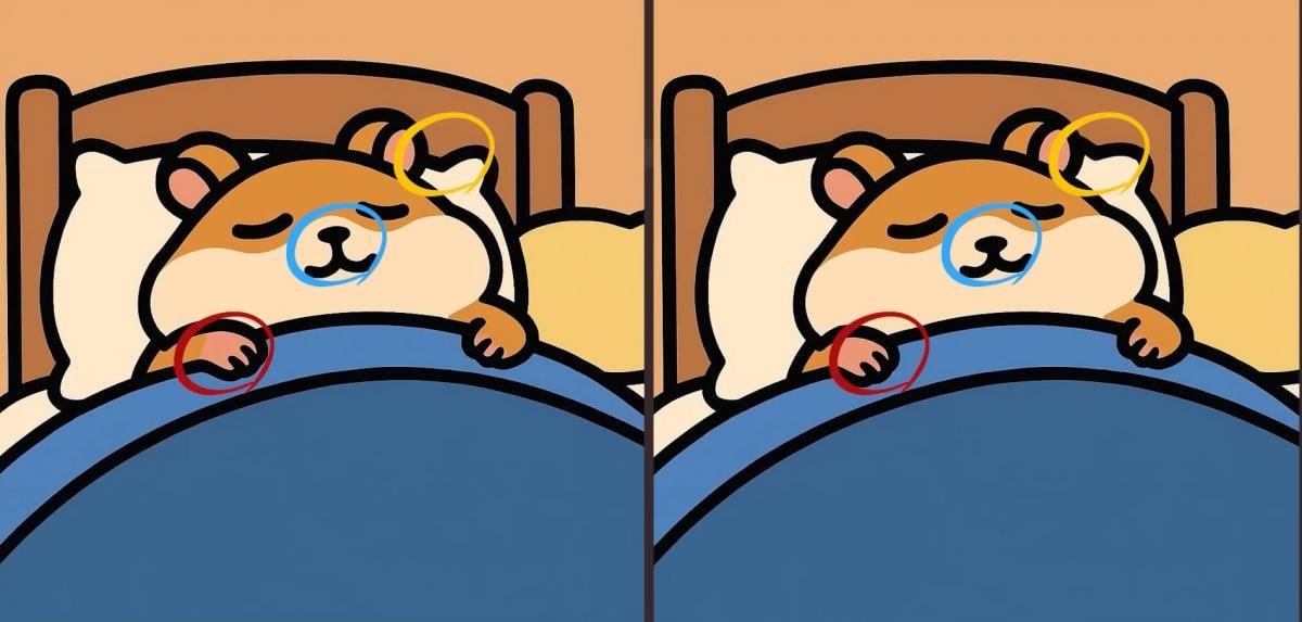 ¿Estás preparado para el siguiente reto? Fíjate bien en las dos imágenes de un hámster durmiendo. A primera vista pueden parecer iges, pero hay 3 pequeñas diferencias. ¿Crees que puedes encontrarlas todas en 29 segundos? ¡Inténtalo y pon a prueba tu agudeza vis!