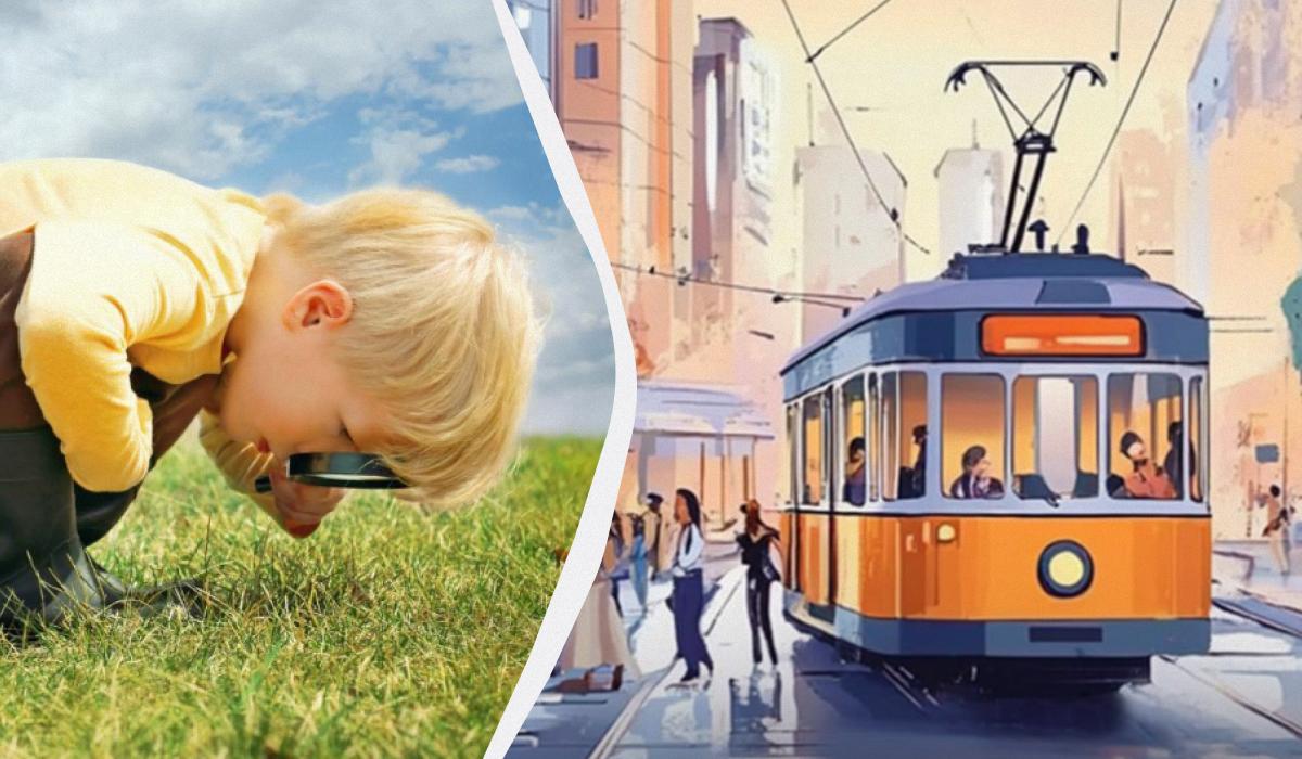 La imagen muestra una calle muy transitada con gente caminando y un tranvía en marcha. Debes programar un temporizador de cinco segundos y conseguir encontrar el fallo antes de que se agote el tiempo. ¿Preparado?
