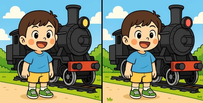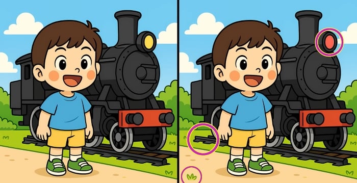 ¿Estás preparado para el siguiente reto? Fíjate bien en las dos imágenes del niño junto al tren de vapor. Pueden parecer idénticas a primera vista, pero hay 3 pequeñas diferencias. ¿Crees que puedes encontrarlas todas en 29 segundos? ¡Inténtalo y pon a prueba tu agudeza vis!